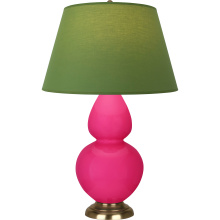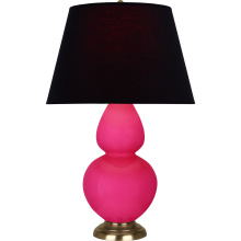 Razzle Rose Glazed Ceramic with Antique Natural Brass Finished Accents Double Gourd Table Lamp with Pearl Dupioni Fabric Shade - Our Double Gourd collection features a simple but gracefully curving silhouette. Available in a wide array of vibrant colors and several different base finishes.