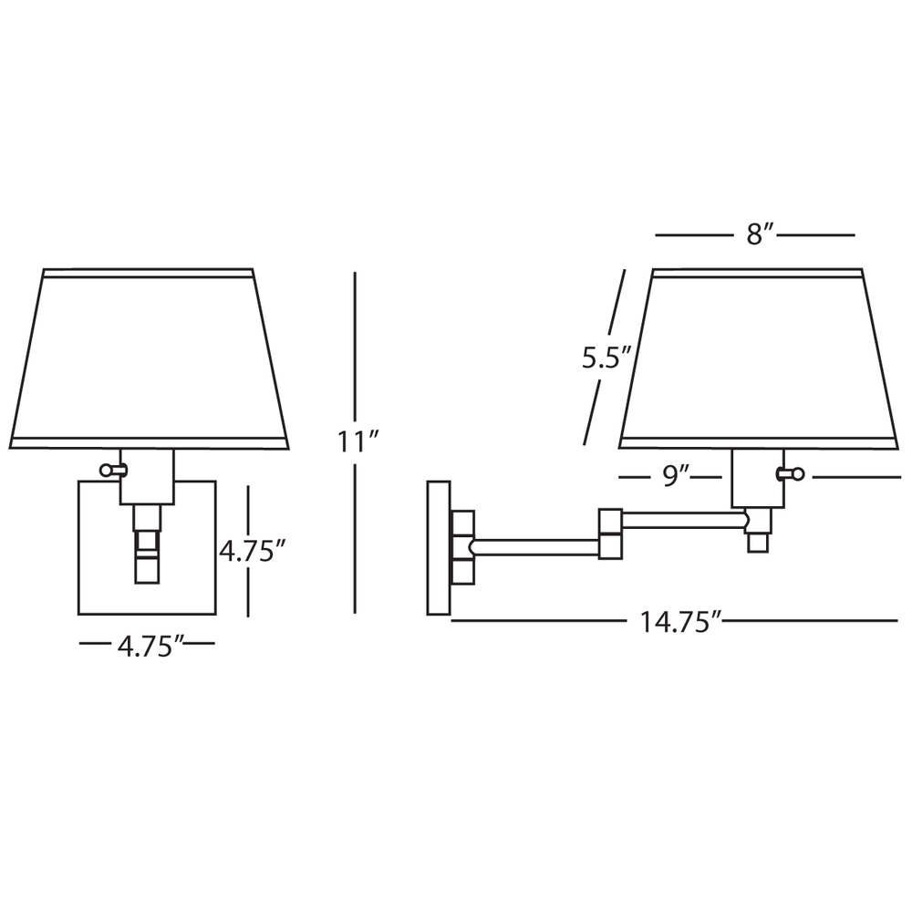 The Real Simple collection is all about straightforward design and functionality. Able to accommodate any contemporary space, pieces in this collection are go-to choices for practical yet stylish lighting solutions. - Matte Black Powder Coat Finish Over Steel Real Simple Wall Swinger with Snowflake Fabric Shade with Bottom Diffuser