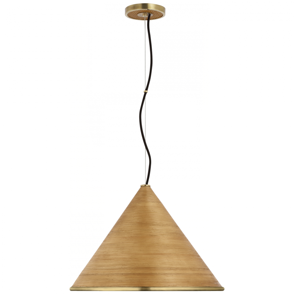 Reine Large Pendant in Hand-Rubbed Antique Brass with Dark Rattan