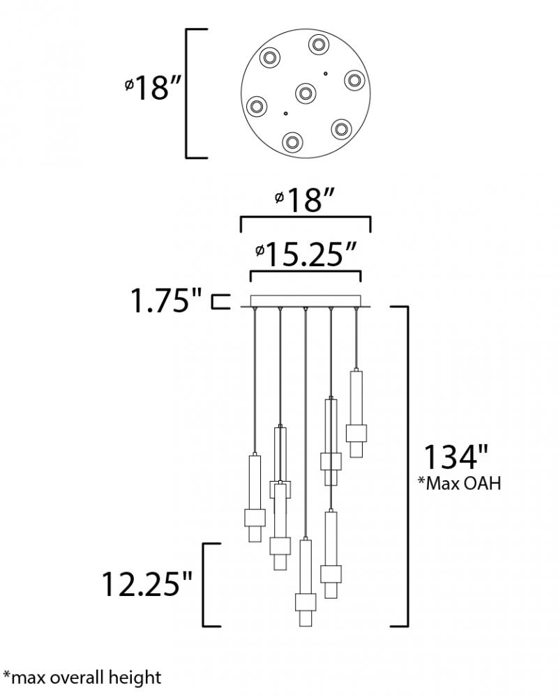 Tubular pendants finished in Satin Nickel or Matte Black in contrasting Satin Brass or Gold bands respectively. Light shines downward from the bottom of the pendant as well as a reveal of light behind the band.