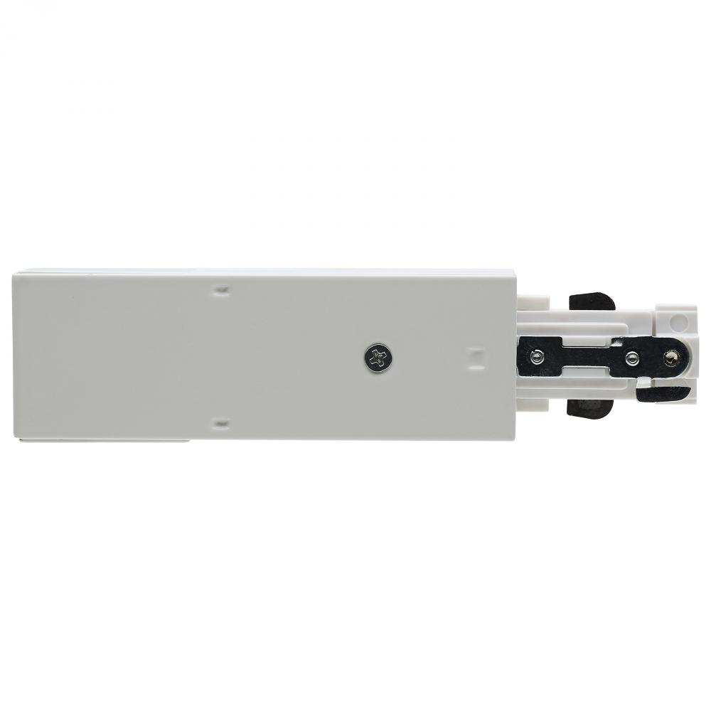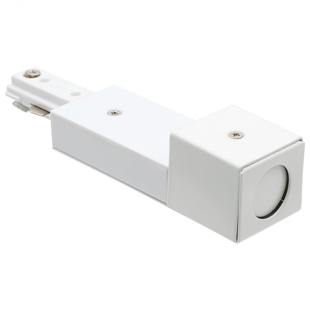SATCO NUVO's TP269 white finish live end connector allows for power to stop and then continue from one spot to another on H track systems thereby increasing the optimal lighting layout based on room size and shape.