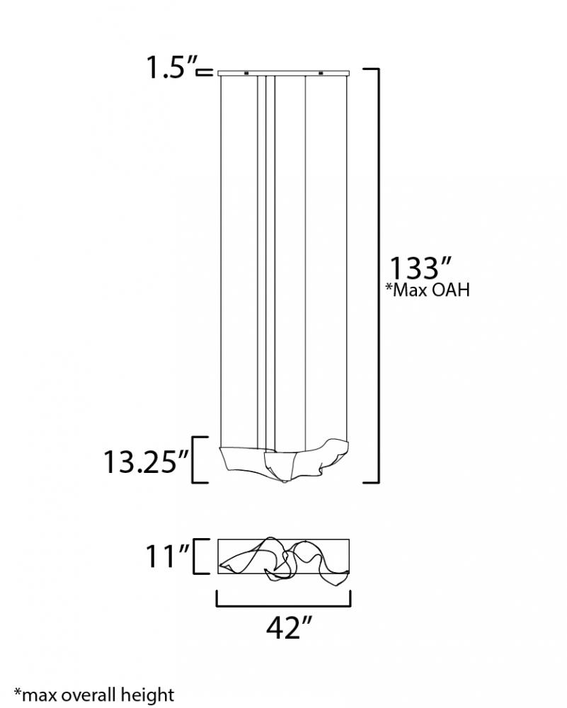 An airy arrangement of abstract forms, the Rinkle pendants feature sheets of transparent acrylic shaped by hand. The light guided acrylic captures the glow of energy efficient LEDs recessed within strips of shining stainless steel, obscuring the source of