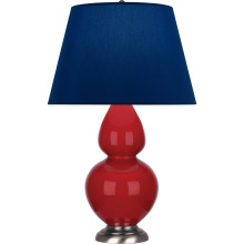 Ruby Red Glazed Ceramic with Antique Silver Finished Accents Double Gourd Table Lamp with Tea Green Fabric Shade with Taupe Lining- Our Double Gourd collection features a simple but gracefully curving silhouette. Available in a wide array of vibrant colors and several different base finishes.