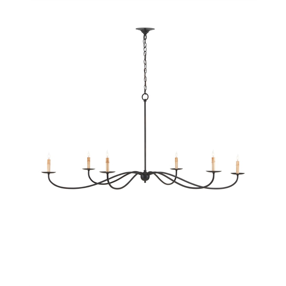 The Saxon Black Chandelier is one of our monumental chandeliers that extends to an impressive 63 inches in diameter. Its shape and the Zanzibar black finish are nods to a bygone era but its slender lines that arc gracefully make its profile modern. Adjustable from 35.5" to 103.5" with use of included chain/rod kit/cable. If your space calls for a longer drop, additional chain/rods/cable is available for purchase.