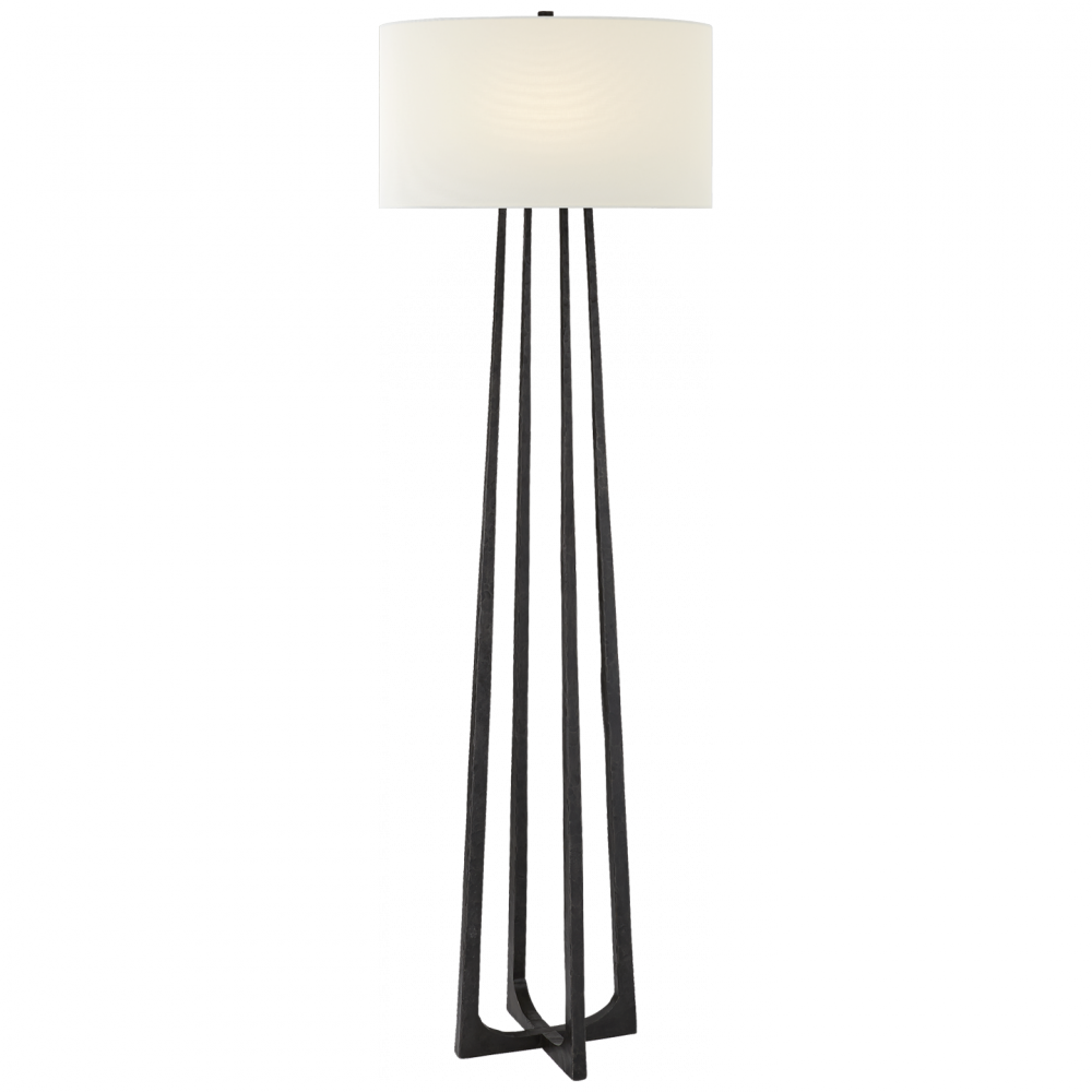 Scala Large Hand-Forged Floor Lamp in Aged Iron with Linen Shade