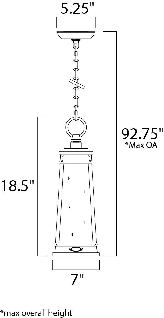 A tapered square shade finished in Olde Brass suspends from a bracket to replicate a nautical lantern. Panels of clear Ripple glass allow for the lamp to shine through while still diffusing the light. The medallion at the base of the shade and rivets along