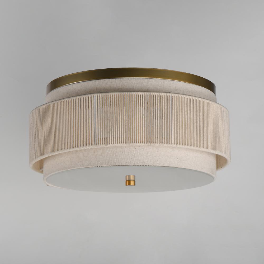 The Seacliff collection blends coastal charm with transitional elegance. Its centerpiece features twisted cotton strands, filtering light beautifully while adding texture and visual interest. Above and below the band of cotton twine, an Off-White linen sha