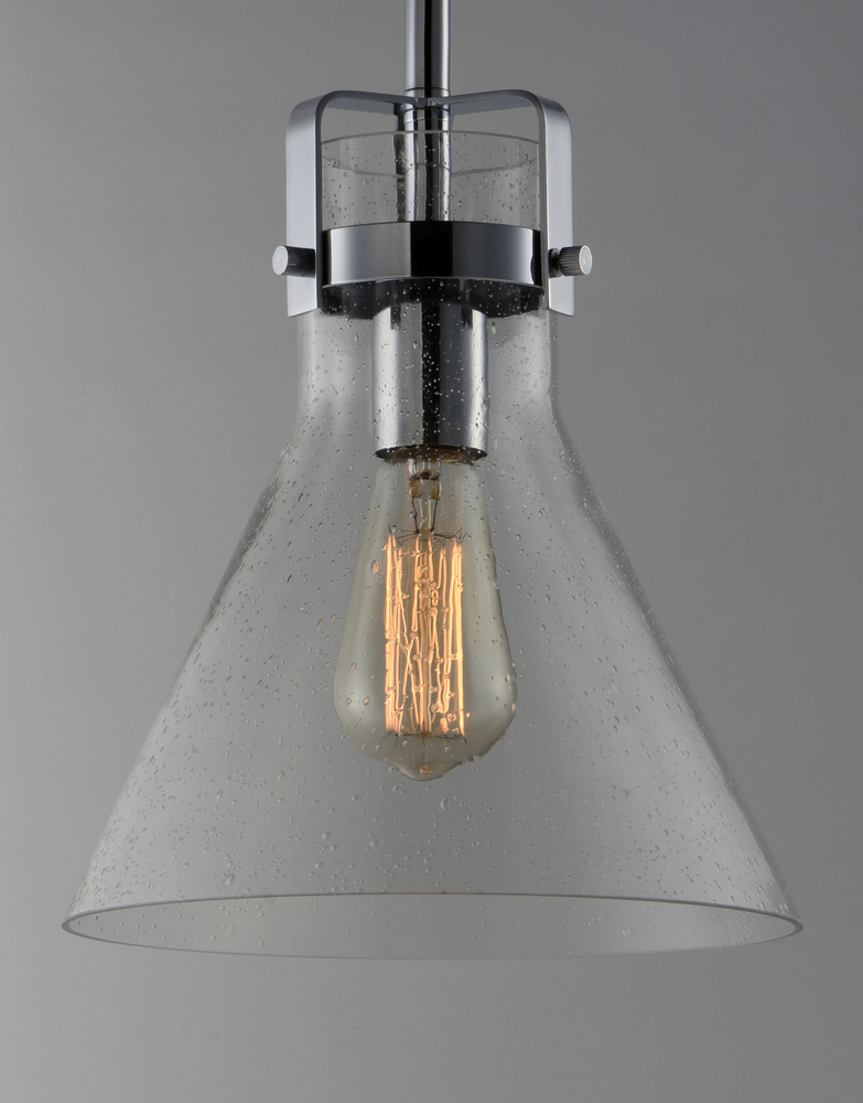 This nautical-inspired collection features Clear Seedy glass cones suspended by a yoke frame. The clear glass offers abundant lighting and compliments the styling of the fixture. Make it a more industrial look by adding filament E26 light bulbs.