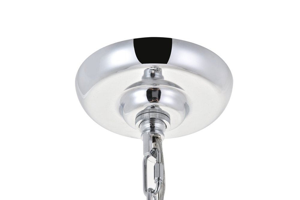 The gentleness of the Selene collection pendant lamp in a chrome finish elicits the calm temperament of the moon and the coy-- yet soothing, light it emits. Weaving through the myriad of the draped shell curtains, the illumination creates a new design every time, whether it is the shadows and highlights that changes with the direction of the light, just as the moon goes through its phases, or the shadows casted with every slight movement of the white shells. A wonderful addition to any home--foyer, living room, or a child's room.