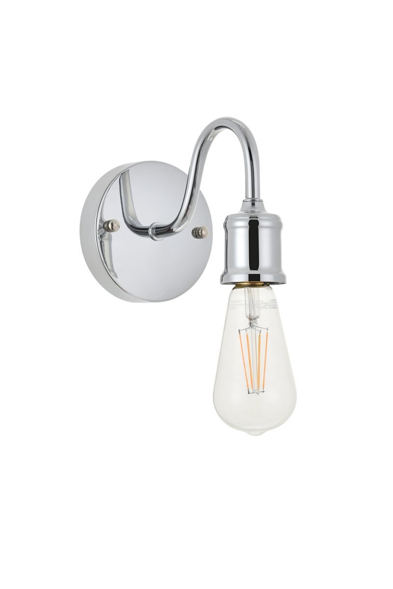 Chrome finish wall sconce with an undulating arm and circular back plate