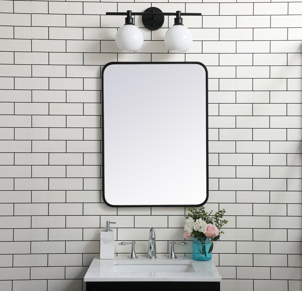Soft corner metal rectangular mirror 22x30 inch in Black