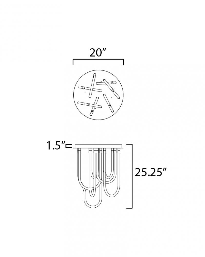 Sweeping matte white acrylic tubes encase an omnidirectional LED light source, arranged in abstract configurations inspired by solar flares. Minimal in composition yet dramatic in form, the Soleil collection offers a striking lighting solution. Available i