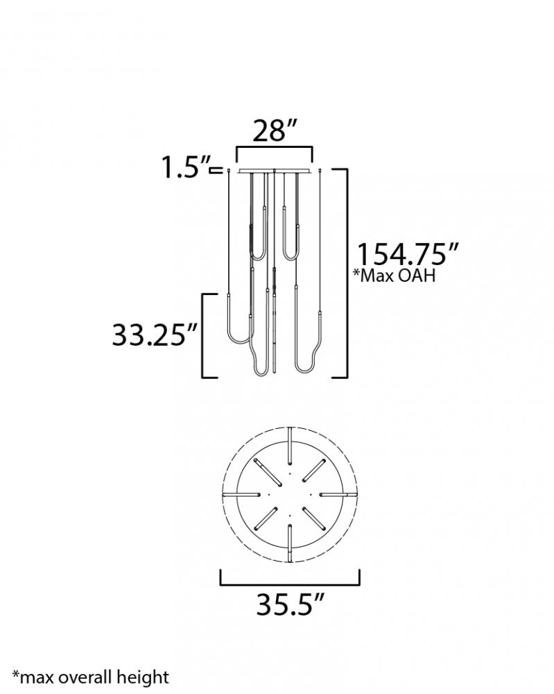 Sweeping matte white acrylic tubes encase an omnidirectional LED light source, arranged in abstract configurations inspired by solar flares. Minimal in composition yet dramatic in form, the Soleil collection offers a striking lighting solution. Available i