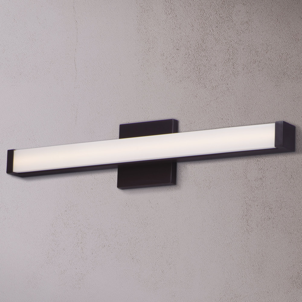 This minimalistic contemporary approach to LED vanity lighting will be the standard for both residential and commercial applications. The light engine features a high quality dimmable driver with multi volt input and high color rendering LEDs for the ultim