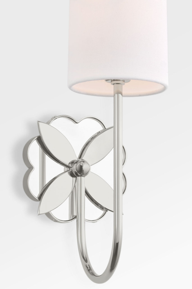 The Spencer 14" 1-Light Sconce by Kate Spade captures the collection’s signature blend of decorative elegance and modern simplicity. Inspired by Kate Spade jewelry, this profile features a mirrored floral backplate With a single delicate flower detail, paired With a natural linen shade that softens the light With warmth and clarity. Its compact scale and refined silhouette make it ideal for hallways, bedrooms, bathrooms, and walk-in closets, where it adds a polished accent With timeless appeal.