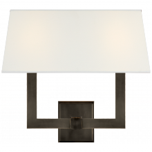Square Tube Double Sconce in Bronze with Natural Paper Single Shade