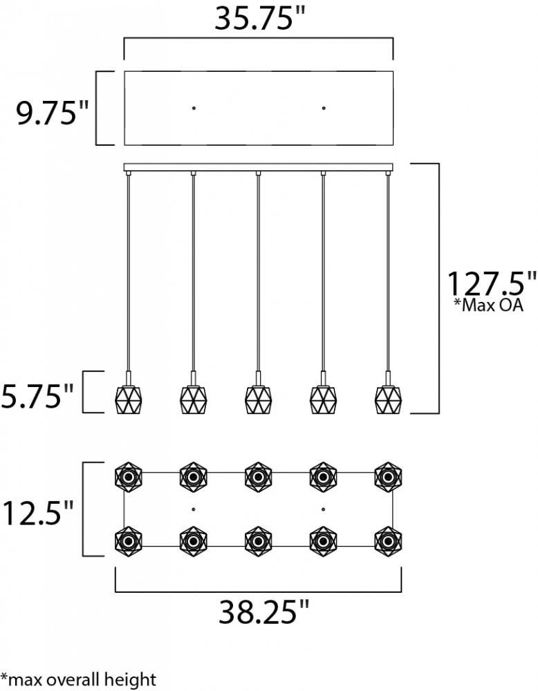 Length- 35.75 Width- 9.75 Height- 1
