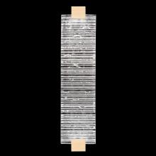 Indoor/outdoor aluminum sconce features a three-dimensional contrast of deep textured and polished cast glass. This stunning landscape of the glass, illuminated by waterproof LEDs, is available in clear or highlighted with antiqued gold leaf (shown). Choice of three finishes, champagne tinted gold leaf finish or silver leaf for indoor only, and a hand rubbed black iron for indoor and outdoor use.