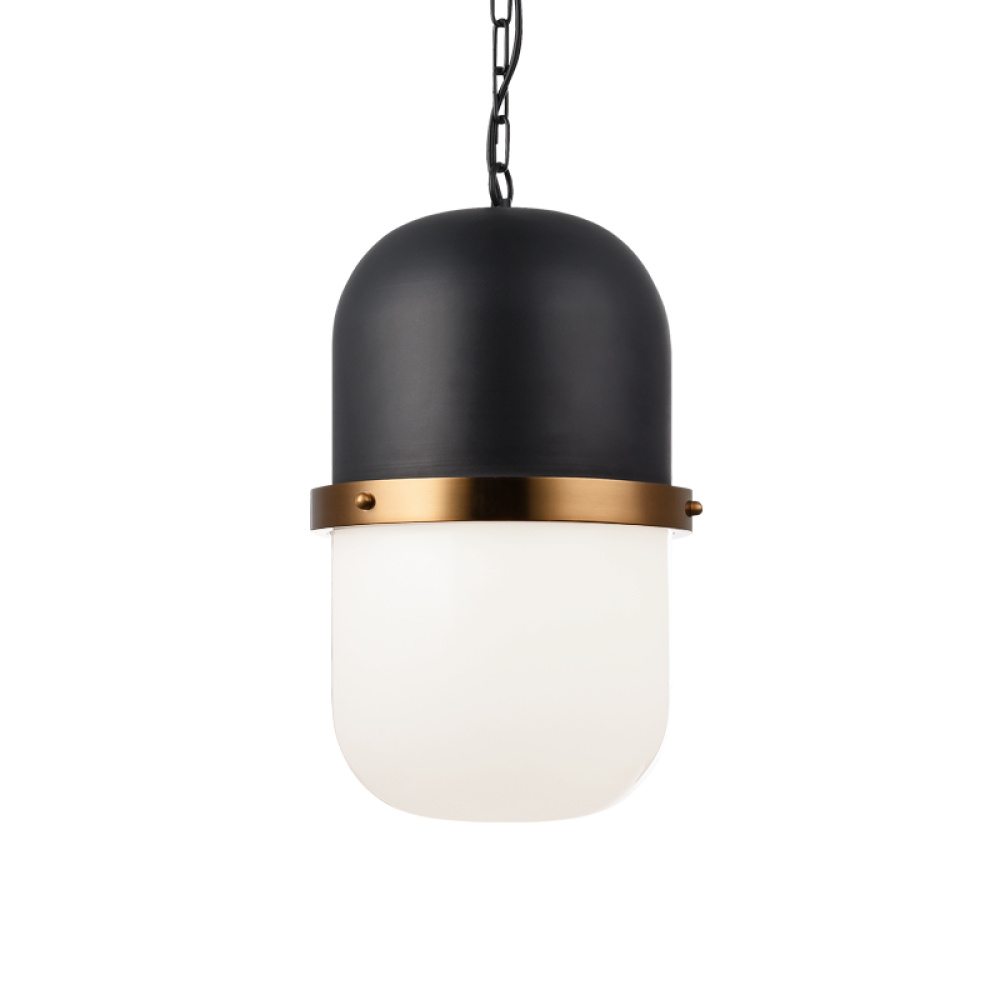 The Tillie series are stylish capsule inspired pendants. Comes in a White and Matte Black finish with Aged Gold Brass detailing that connects the Clear Glass or Opal Glass bottom.These versatile pendants are suitable for all spaces. Available in 2 sizes.