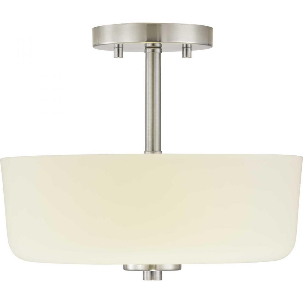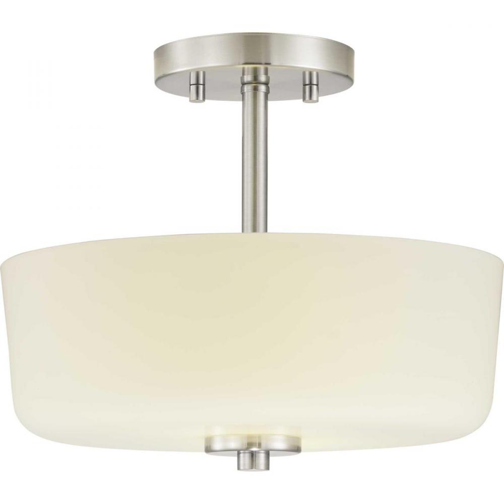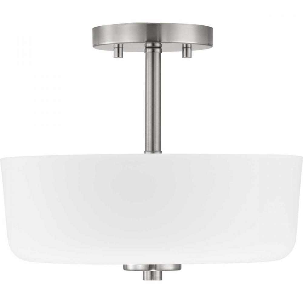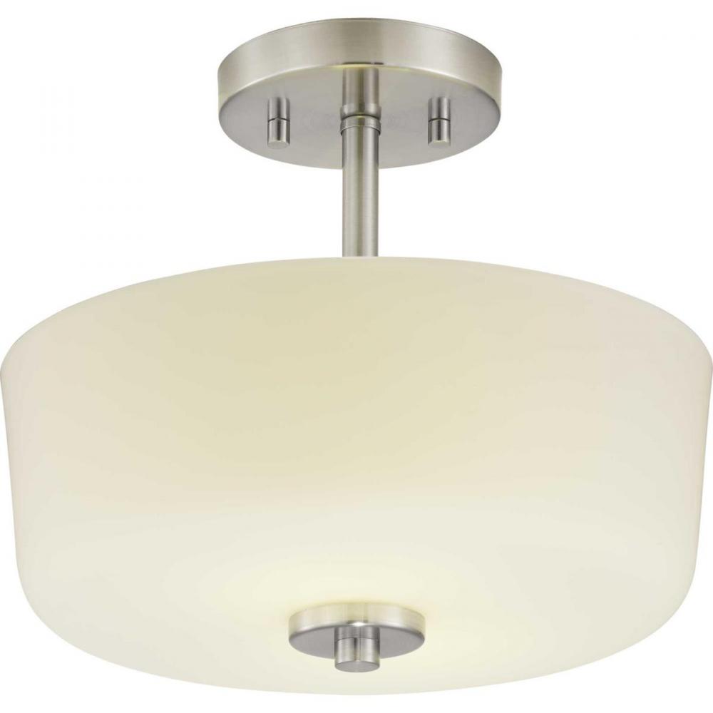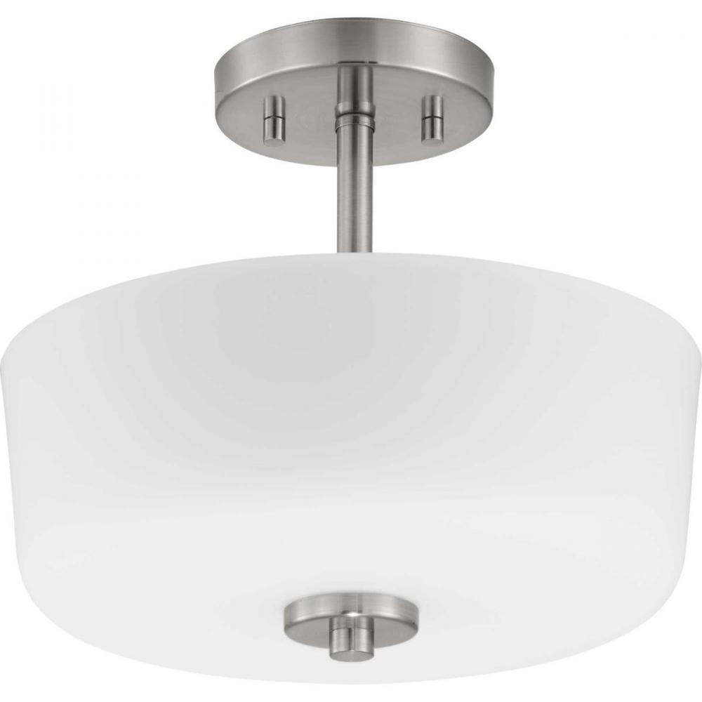 An etched white glass bowl on the semi-flush convertible light echoes the classic schoolhouse variety — updated with sleek metallic fittings;Looks sharp in transitional and modern kitchens, mudrooms, dressing rooms and small entries;Clean fittings and et