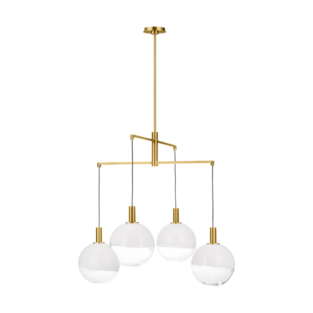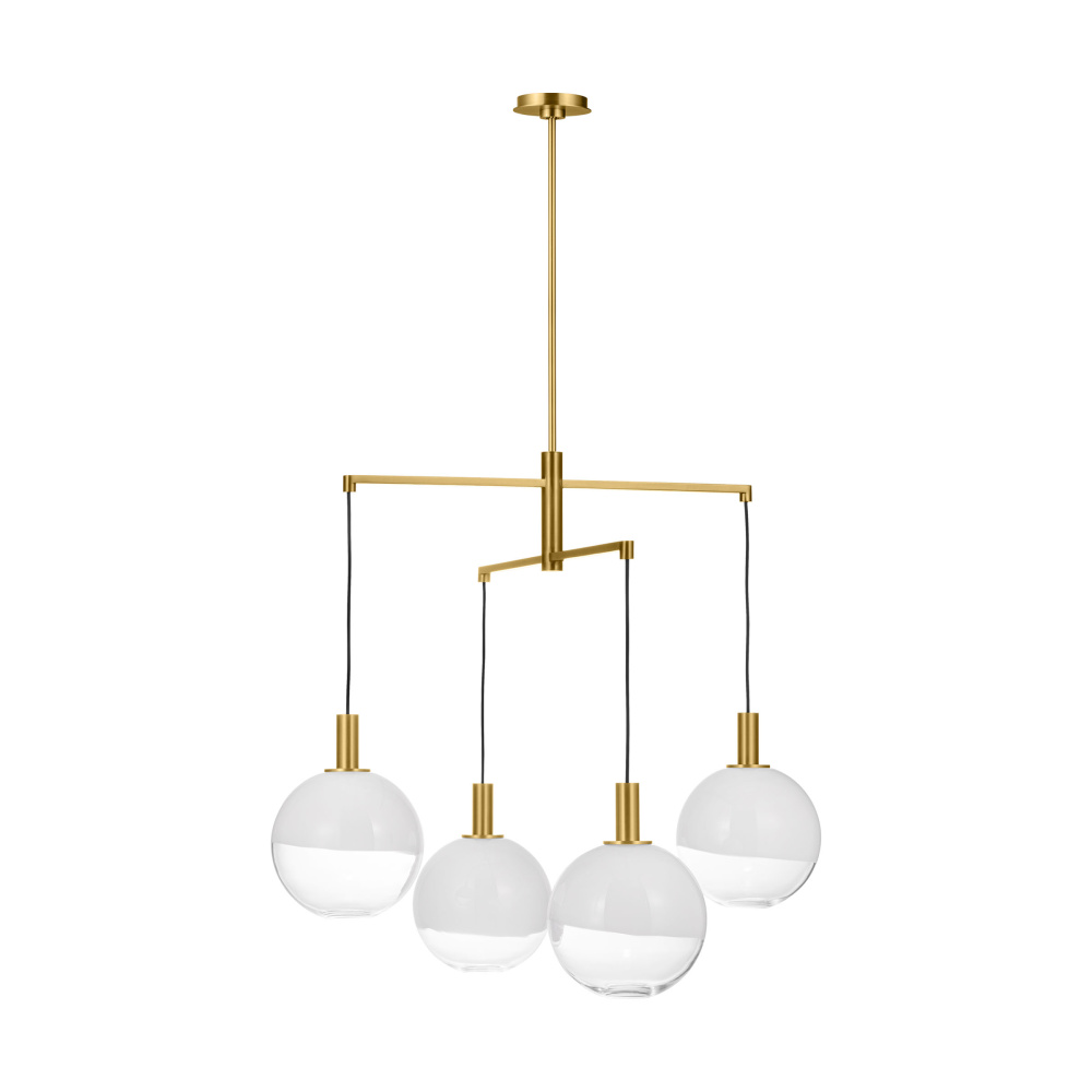 The Torian collection by Sean Lavin draws inspiration from sculptural hanging mobiles. Multiple arms with fabric cords suspend beautiful glass globe shades with an ombre effect, transitioning from milk to etched clear glass. Ideal for entryways and dining rooms, the Torian chandelier will lend a sophisticated artistic touch to interior spaces.