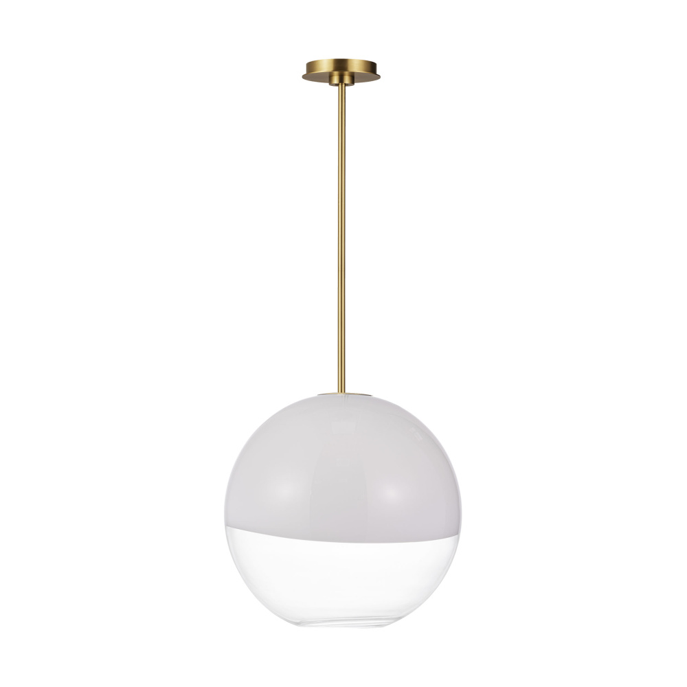 Crafted with Steel in a Burnished Brass finish with milk / clear glass mix glass shade
