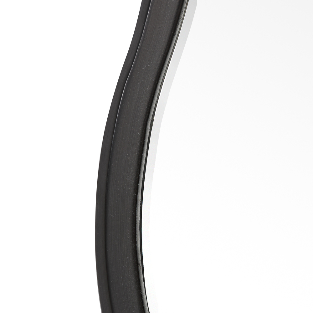 Showcasing A Feminine Scalloped Edge, This Shaped Wood Mirror Adds Whimsical Flair to Any Design. The Mirror is Finished in Satin Black and Has A 1 1/4" Bevel.