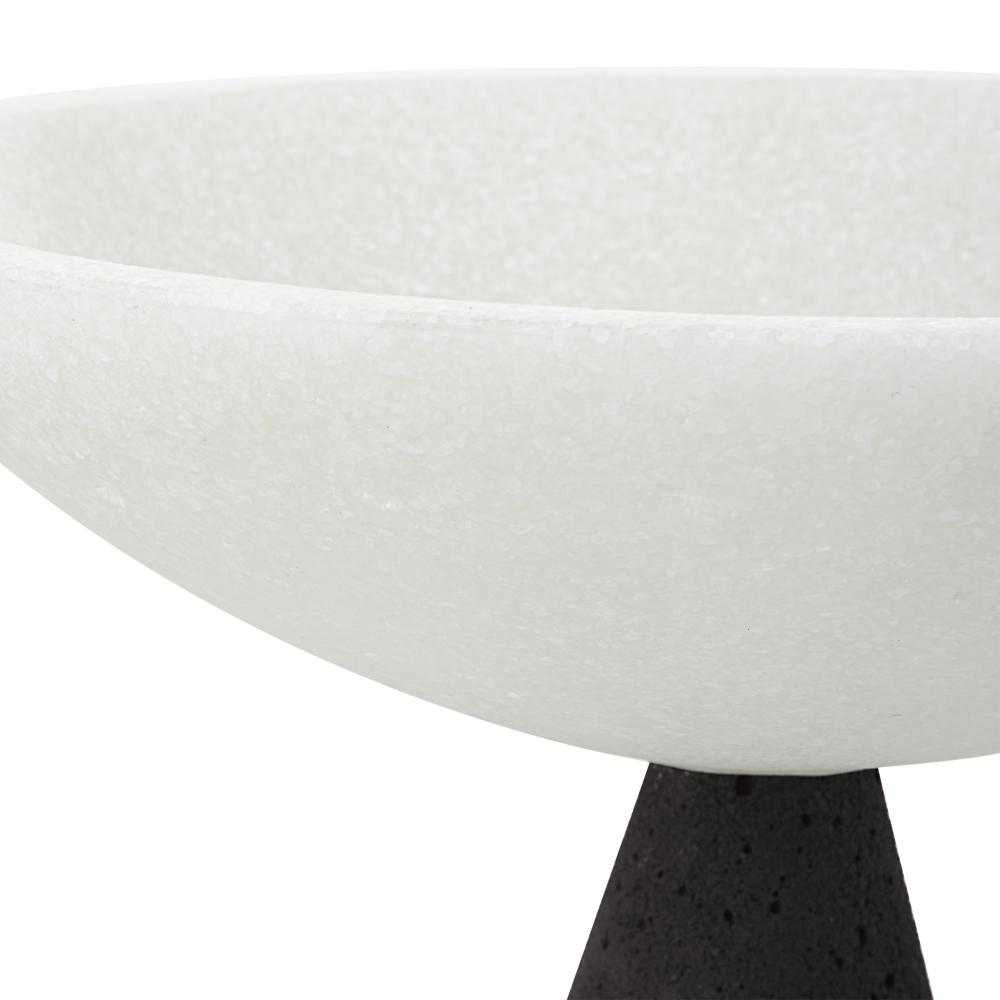 Set of Two Modern Pedestal Bowls Are Crafted From A Striking Black and White Man-made Stone That Accurately Replicating The Look of Thassos Marble. Sizes: S-10x9x10, L-10x12x10