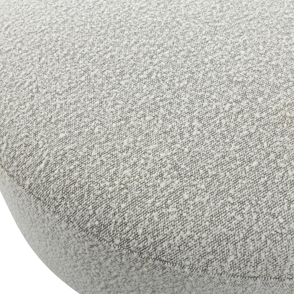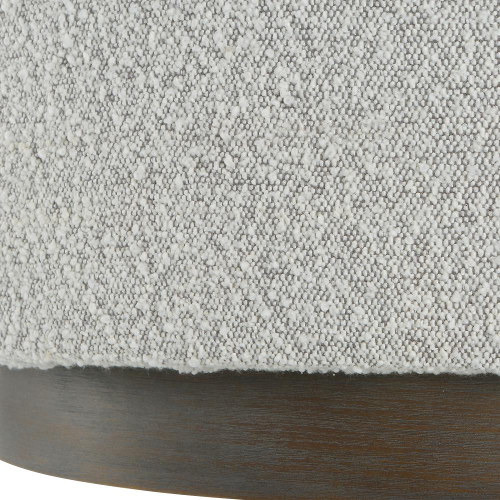 This Plush Ottoman is Covered in A Casual Ivory and Warm Gray Boucle Fabric with A Natural Walnut Stained Wood Base. Perfect As A Coffee Table Topped with An Oversized Tray.
