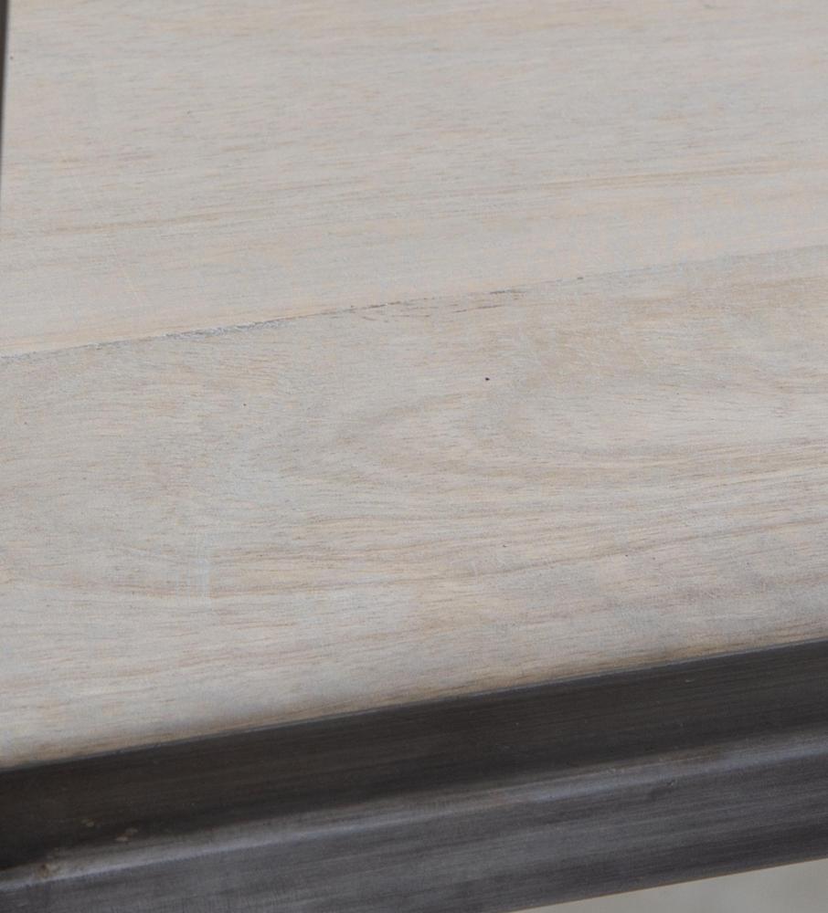 Boasting with Display Space, The Baldwin Etagere is A Versatile and Streamlined Piece That Has A Place in Any Home. The Iron Frame is Finished in Clean Gunmetal with 5 Shelves in White Washed Mango Wood. Distance Between Shelves is 16".