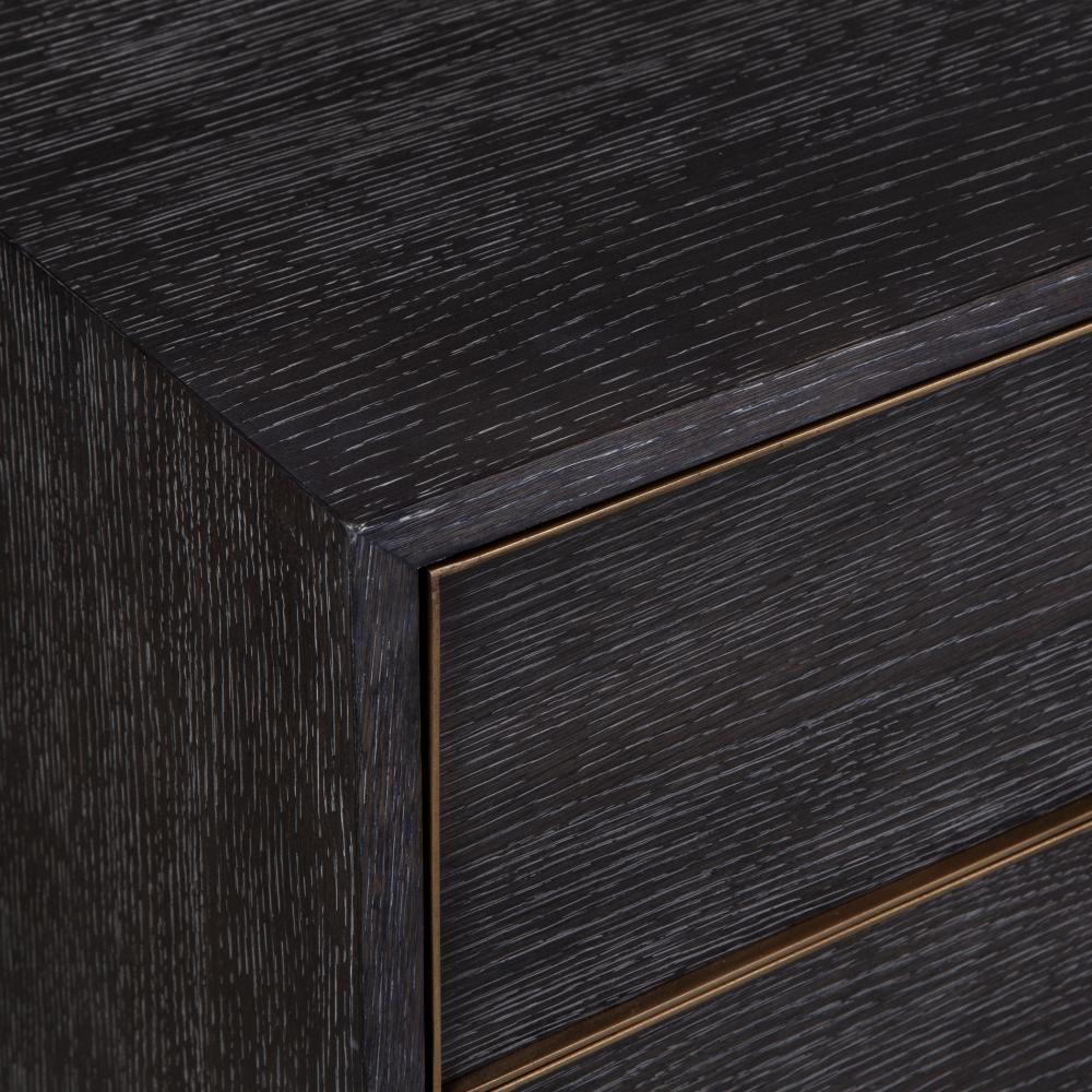 Showcasing Refined Simplicity, This Four Drawer Chest Is Layered In A Dark Walnut Finished Oak Veneer Accented With Brass Finished Metal Edge Profiles And Coordinating Drawer Pulls.