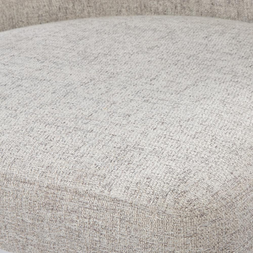 Gently Sloped Modern Lines Paired With Tapered Metal Legs In Brushed Gold. Upholstered In A Heathered Gray Polyester Fabric. Seat Height Is 19".