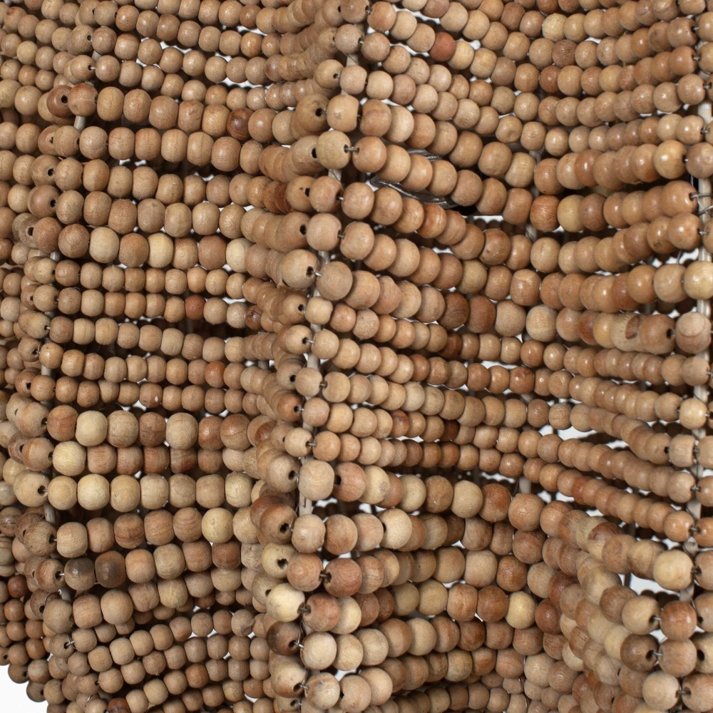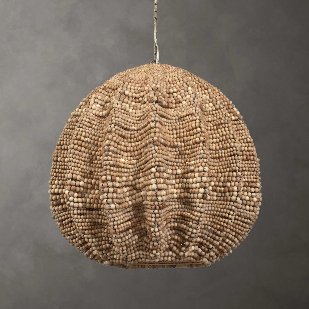 Rich Natural Wooden Beads In Various Shades Make Up An Extra Large 29" Shade On This Statement Pendant Featuring Antique Brass Details. 5-40 Watt Max Edison Sockets. Bulbs Not Included. Supplied With 15’wire, 7’ Chain For Adjustable Installation.