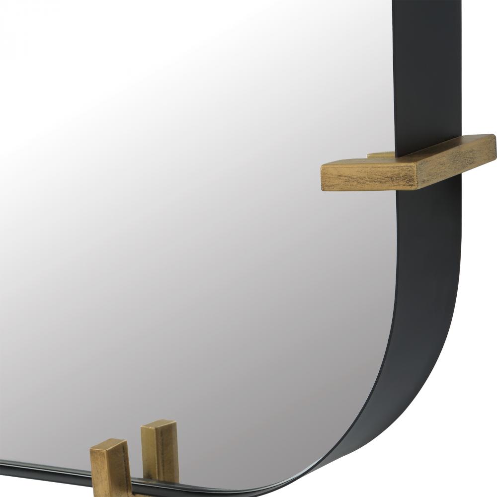 The Pali Mirror Successfully Pairs Contemporary and Industrial Styles with A Black Iron Strap Frame Accented By Lightly Antiqued Brushed Gold Details. May Be Hung Horizontal or Vertical.