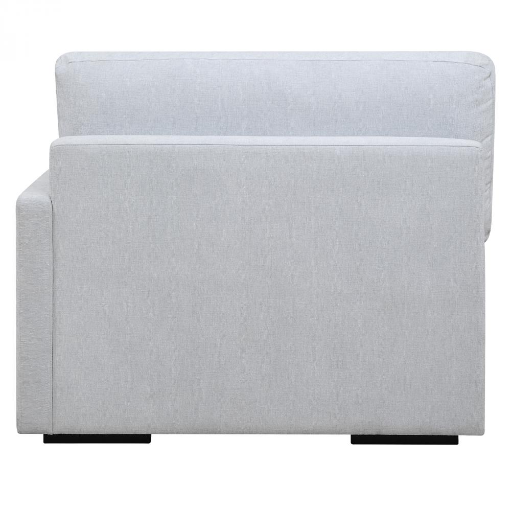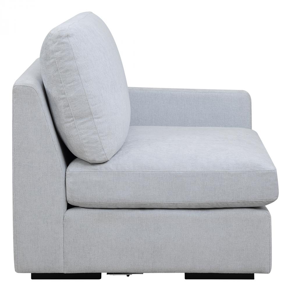 A Modern Silhouette That Offers Style And A Comfortable Place To Curl Up. The Refuge Modular Collection Is Crafted With Premium, High Durability Foam Cores And Synthetic Down Wrap. Featuring The Patented RidgEraser Technology To Ensure Consistent Comfort Between Cushions. Upholstered In A Finely Textured, Cleanable Polyester In Light Cloud Blue. Seat Height Is 20".