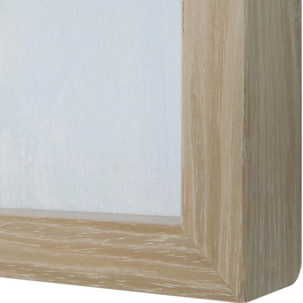 Printed on Canvas, Soothing Hues of Blue, Taupe, and Gray Blend Together with Light Moss and Slate to Create A Modern Coastal Feel. A Gray Washed Pine Frame Surrounds Each Canvas. May Be Hung Horizontal or Vertical. Artwork By Isabelle Z.