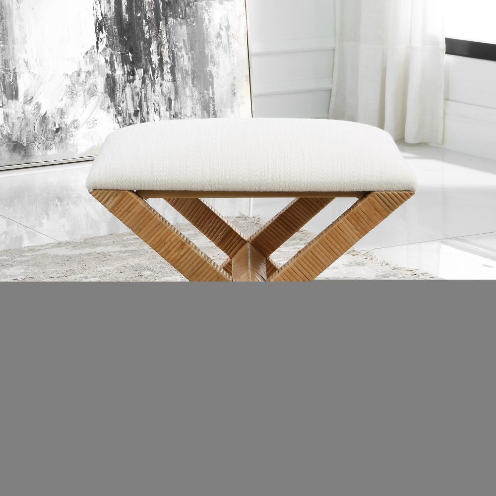 With Equal Parts Polished and Casual, The St. Tropez Bench Has Unlimited Styling Opportunities. The X-base is Wrapped in A Natural Rattan with Antique Brass Foot Caps and is Complemented By A Plush Upholstered Seat in A Crisp Textured White Polyester.