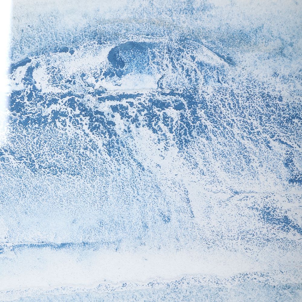 Showcasing Vivid Cobalt Blue, White, and Sand Tones, This Transitional Artwork Creates A Tranquil Backdrop for Any Coastal Designed Space. The Print is Accented By A Large White Inner Frame with A Naturally Finished Pine Wood Outer Frame Under Glass. Artwork By Chris Paschke.
