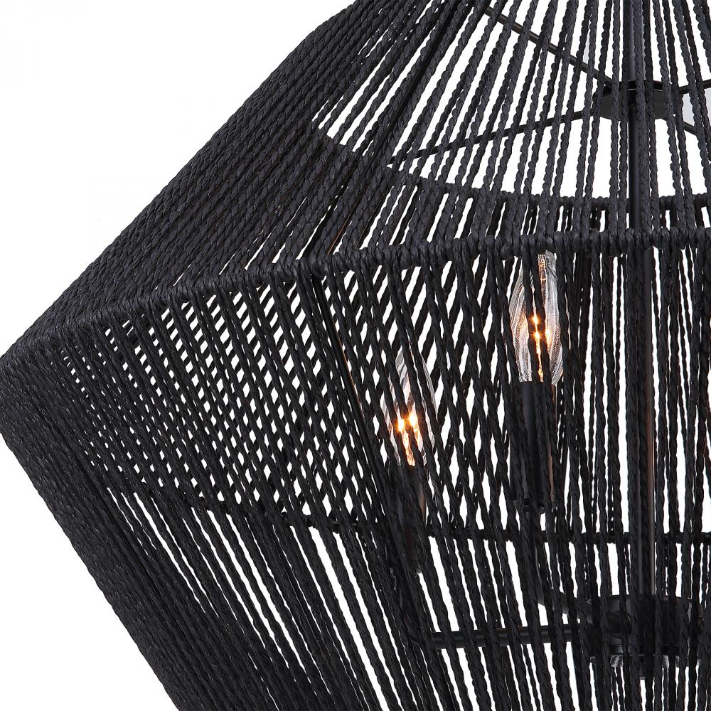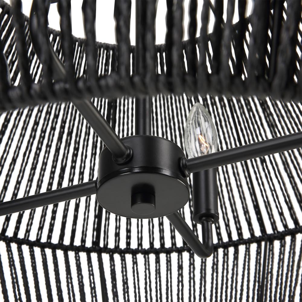 Natural Rope is Hand Wrapped and Dyed A Chic Black to Form The Shade of Our 4 Lt Pendant Giving Both An Adventurous & Dressed Up Feel in Matte Black. 4-60 Watt Max Candelabra Sockets. Bulbs Not Included. Supplied with 15' Wire, 3-12" Stems and 1-6" Stem for Adjustable Installation.