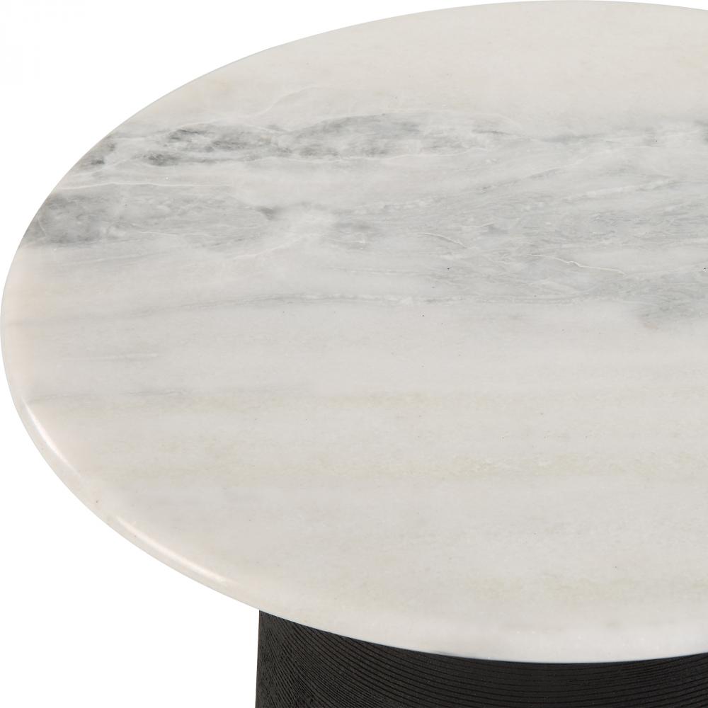 The Curved Forms of The Total Eclipse Accent Table Come Together Creating Juxtaposed Textures of Polished White Marble and Hand Etched Porcelain in Matte Black. Because of The Natural Characteristics of Marble, Each Piece Will Have Unique Veining Patterns.