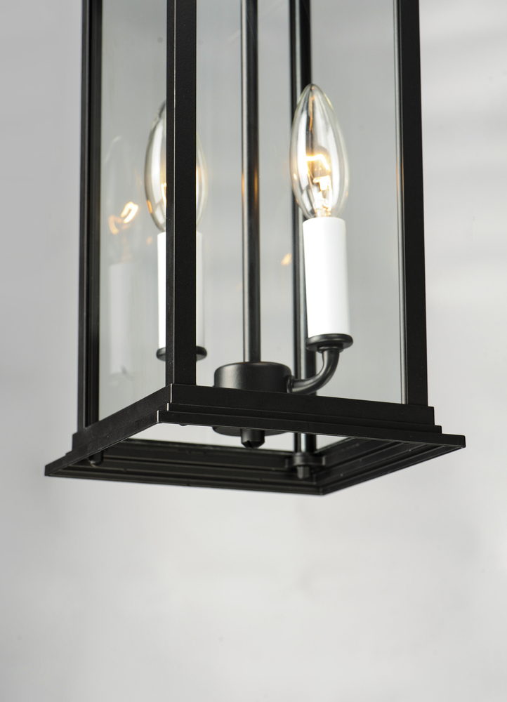 Inspired by classic coach gas lanterns, the Vicksburg collection features die-cast aluminum construction finished in Black with Clear glass. The candle sleeves are done in a contrasting off-white finish to add dimension to the lantern. Available in numerou