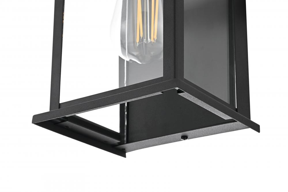 Transform your outdoor spaces with this distinctive wall lantern, where vintage-inspired design meets modern craftsmanship. Built from sturdy iron and softened with frosted glass, this piece blends clean rectangular lines with a gently curved cap and decorative ring. The single vintage-style bulb casts a warm, soothing glow, ideal for creating a welcoming atmosphere. Finished in a versatile matte black, this weather-resistant lantern is as practical as it is stylish—perfect for adding character to patios, entryways, or garden paths.