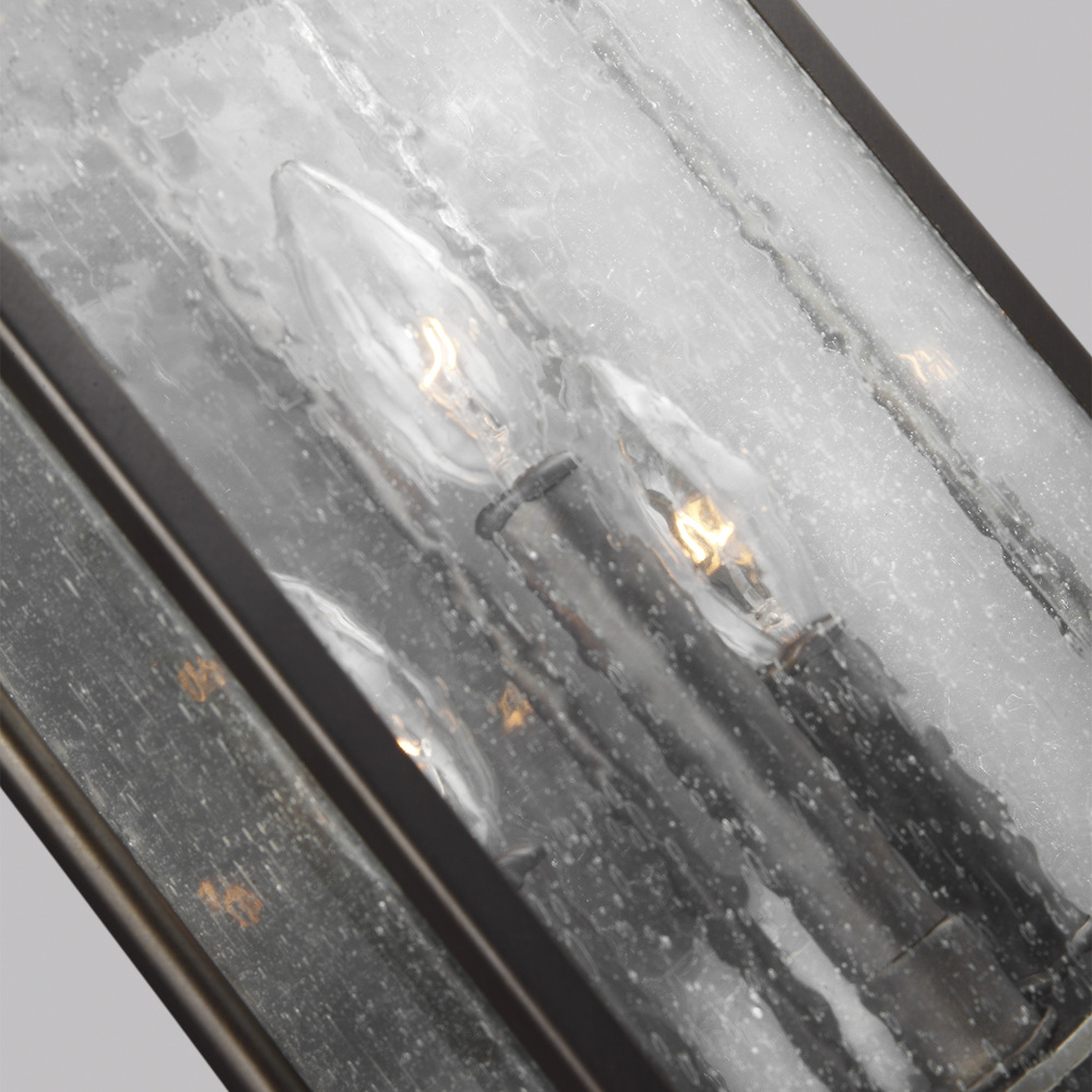 The Sean Lavin Wellsworth three light outdoor wall fixture in antique bronze enhances the beauty of your property, makes your home safer and more secure, and increases the number of pleasurable hours you spend outdoors. A subtle interplay of traditional design elements and nautical influences creates the charming visual approach to the Wellsworth outdoor collection by Visual Comfort Studio. Available in three finishes and two different aesthetics. Antique Bronze finish paired with Clear Seeded glass creates a more traditional look to these outdoor light fixtures; while Burnished Brass and Painted Brushed Steel finish coupled with Clear glass reflects a more contemporary approach. The Wellsworth collection includes a 3-light outdoor pendant, a 3-light outdoor post lantern, and 3-light small and medium outdoor lanterns, as well as a 4-light large outdoor lantern. Cast aluminum construction ensures durability. Wet Rated.